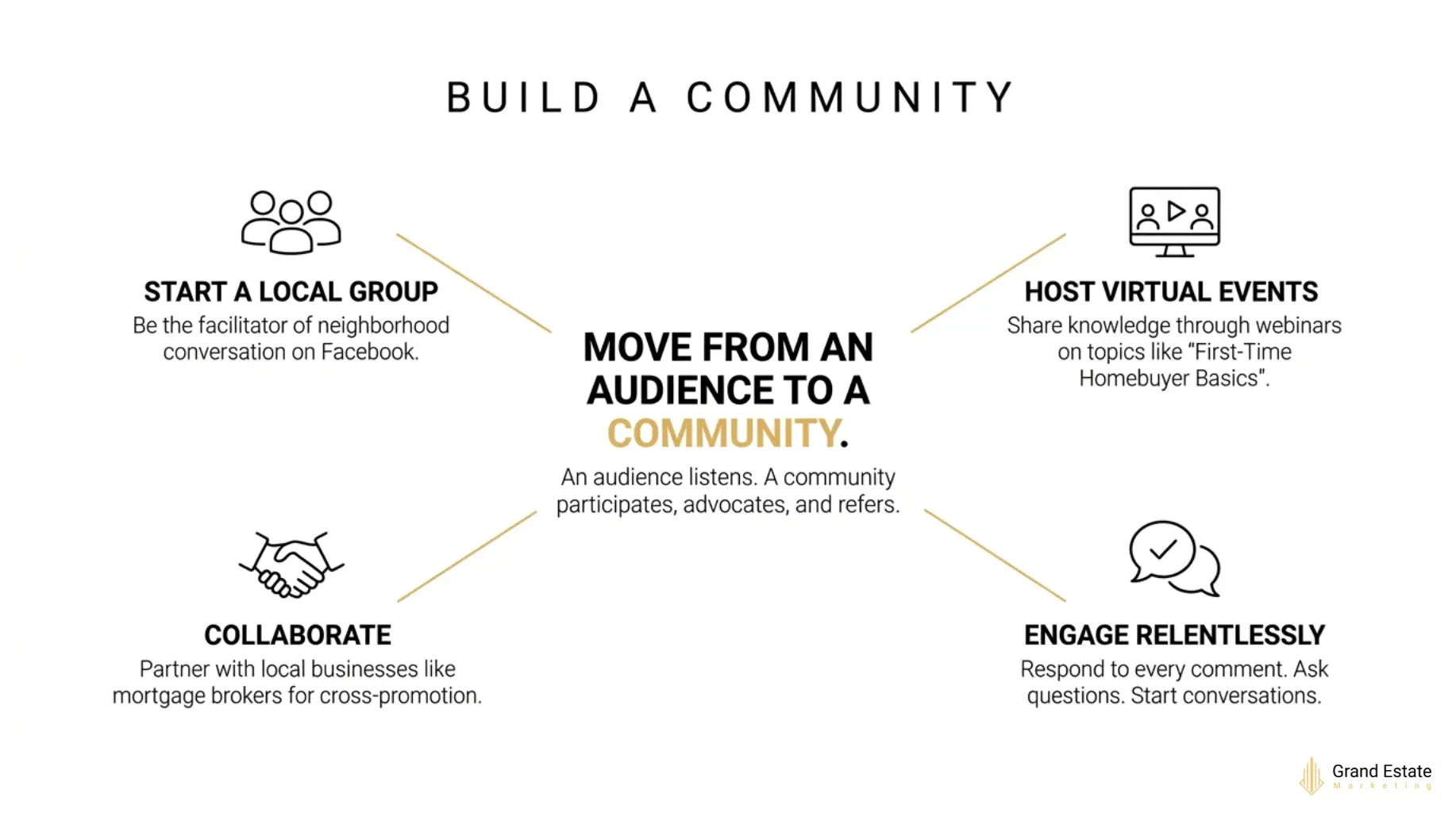 The strongest real estate social media strategies create communities, not just audiences.