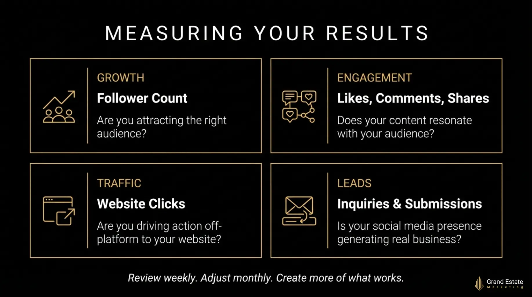 Review and adjust monthly. Look at which content performed best and create more of what resonates with your audience.